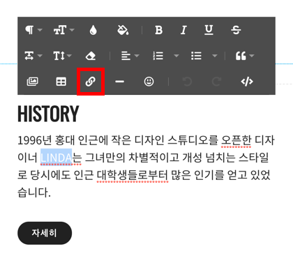 텍스트 에디터 바깥 영역을 클릭해 링크 삽입을 완료합니다.