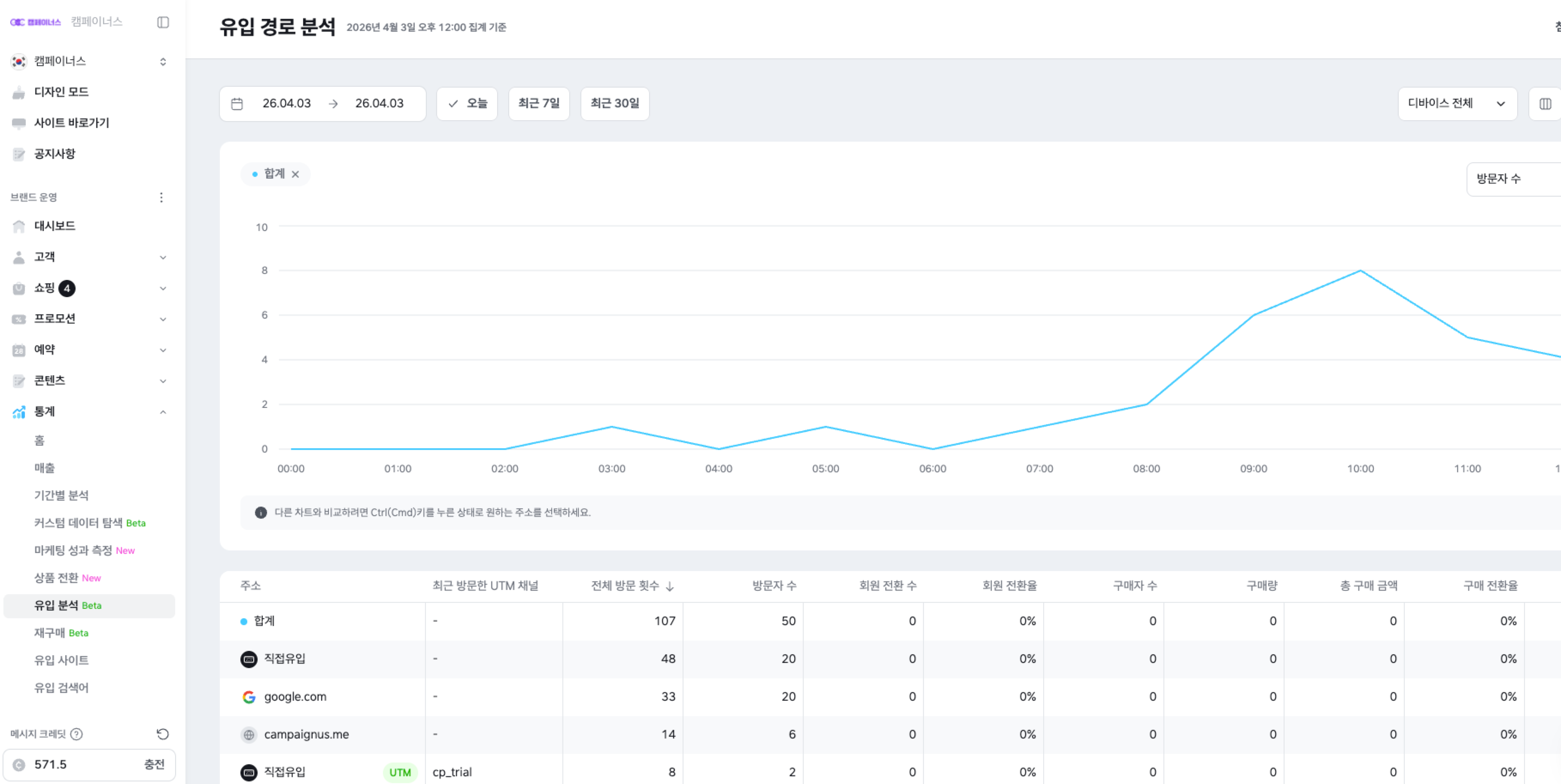 이를 위해 캠페이너스는 [유입 경로 분석] 기능을 제공하며,