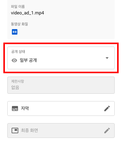 중요: 공개로 설정한 경우, YouTube에서 내 동영상을 검색할 수 있습니다. 일부 공개로 설정한 동영상은 YouTube에 노출되지 않지만, 링크를 알고 있는 누구나 볼 수 있습니다.
