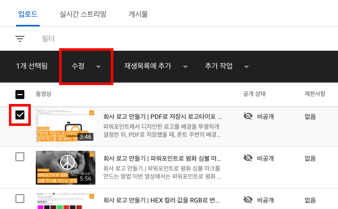 공개 상태를 변경하려는 동영상을 클릭합니다.
