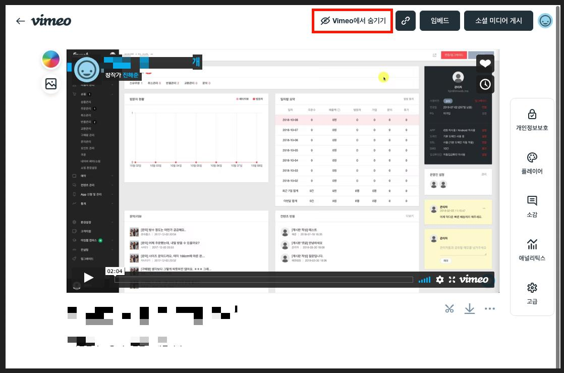 중요: 퍼가기 옵션을 사용을 변경되면 누구나 이 동영상을 공유할 수 있게 됩니다. 따라서 내 사이트에 삽입하려는 동영상이 유료이거나 외부에 노출되면 안 되는 경우 Vimeo를 활용하실 것을 권장합니다.