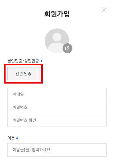 이제 내 사이트에 접속하여 로그아웃 상태로 회원가입을 시도해볼 수 있습니다. 회원가입 과정에서 아래 그림과 같이 간편인증 버튼이 표시되면 정상적으로 설치된 것입니다.