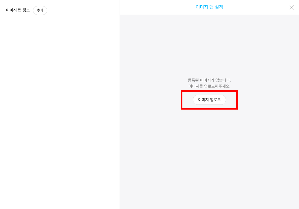 이미지맵 설정 창 오른쪽에 위치한 이미지 업로드 버튼을 클릭합니다.