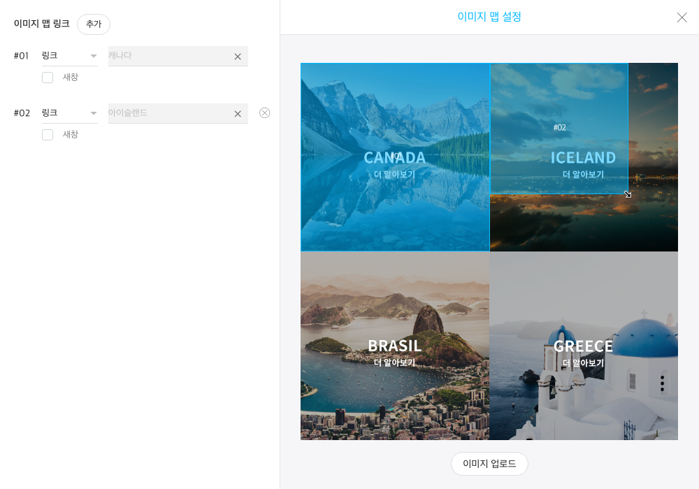 이미지맵 설정 창 바깥 영역을 클릭해 설정을 완료합니다.
