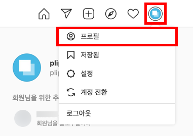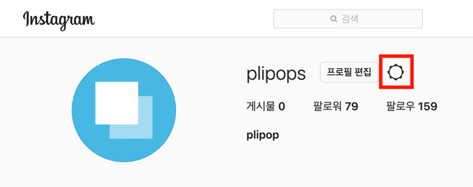프로필 편집 버튼 오른쪽에 위치한 톱니바퀴 아이콘을 클릭합니다.