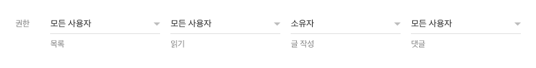 글 작성: 소유자 또는 선택그룹 사용자를 선택합니다.