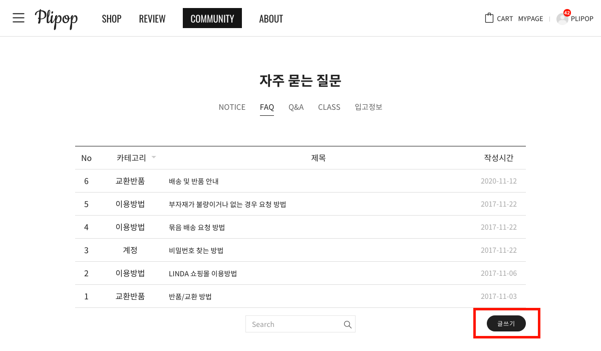 오른쪽 상단의 작성 버튼을 클릭해 게시물을 등록합니다.