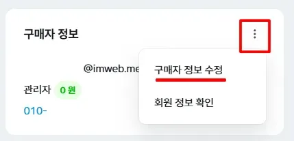 관리자는 상단 더보기(…) 버튼을 클릭하여 해당 정보를 직접 수정할 수 있어요.