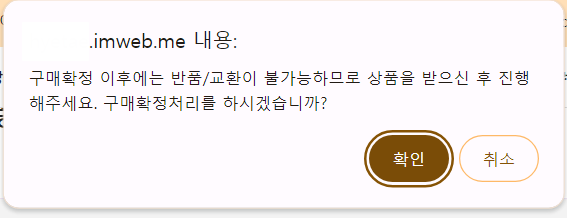 구매자가 구매 확정 시에는 아래와 같이 안내 문구가 노출되며 이후에는 반품/교환 접수가 불가한 점 참고해 주세요.