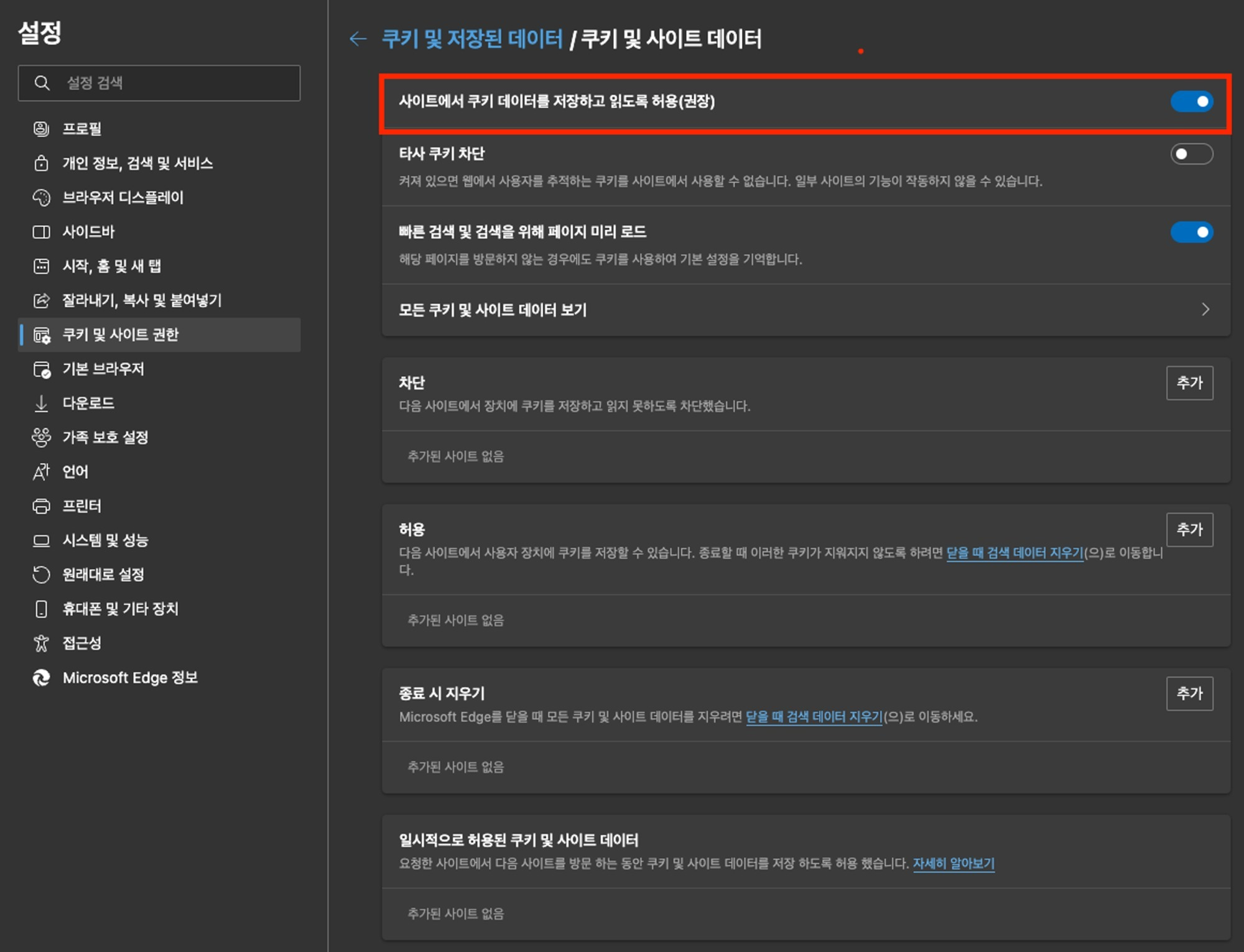 ์ฃ์ง์ค์ โ ์ฟ ํค ๋ฐ ์ฌ์ดํธ ๊ถํ โ ์ฟ ํค ๋ฐ ์ฌ์ดํธ ๋ฐ์ดํฐ ๊ด๋ฆฌ ๋ฐ ์ญ์ โ ์ฌ์ดํธ์์ ์ฟ ํค ๋ฐ์ดํฐ๋ฅผ ์ ์ฅํ๊ณ ์ฝ๋๋ก ํ์ฉ(๊ถ์ฅ) - ํ์ฑํ