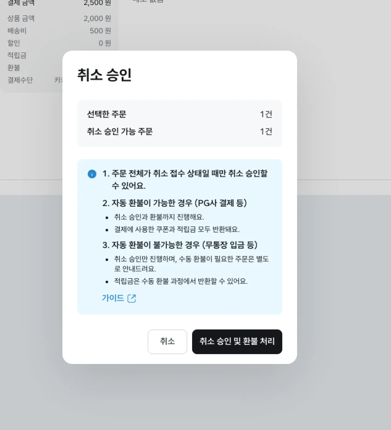 👉 월 주문량이 많거나 프로모션/예약 판매를 운영하는 경우 특히 유용합니다. 반복적인 취소 승인과 환불 처리 시간을 줄여보세요!