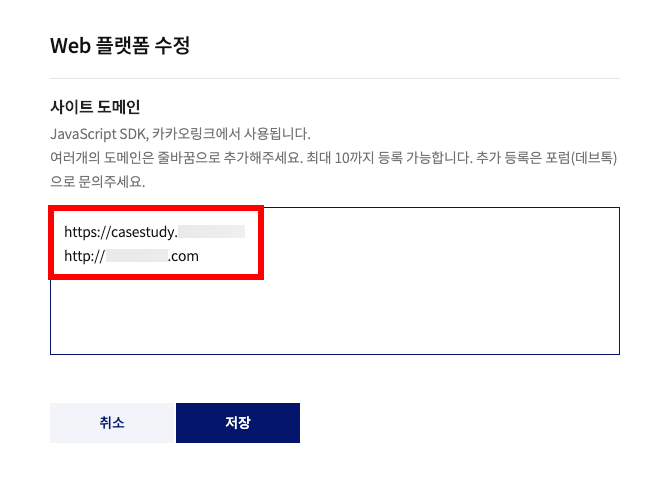 주의: http:// 및 https:// 를 정확히 구분해 입력해 주세요.