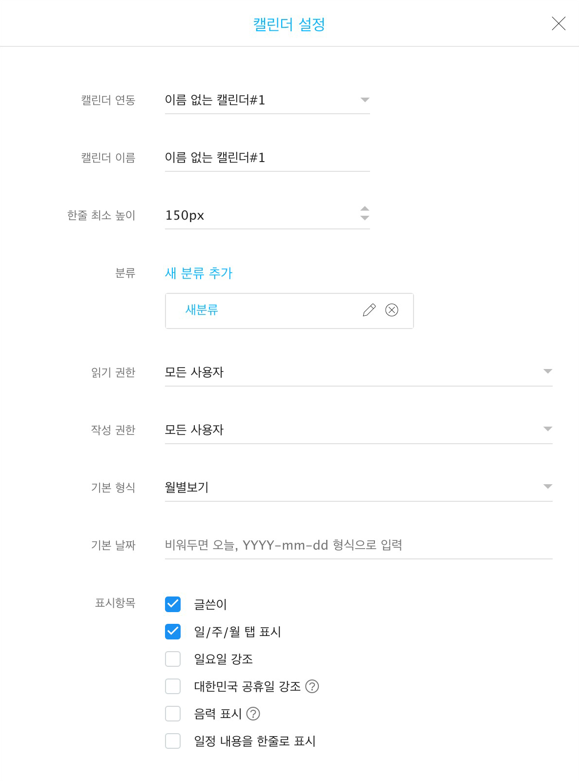 읽기 권한 / 작성 권한: 캘린더를 읽고 작성할 수 있는 권한을 설정합니다.