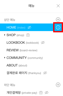 메뉴에 마우스 포인터를 올리고, ⓘ 아이콘을 클릭합니다.