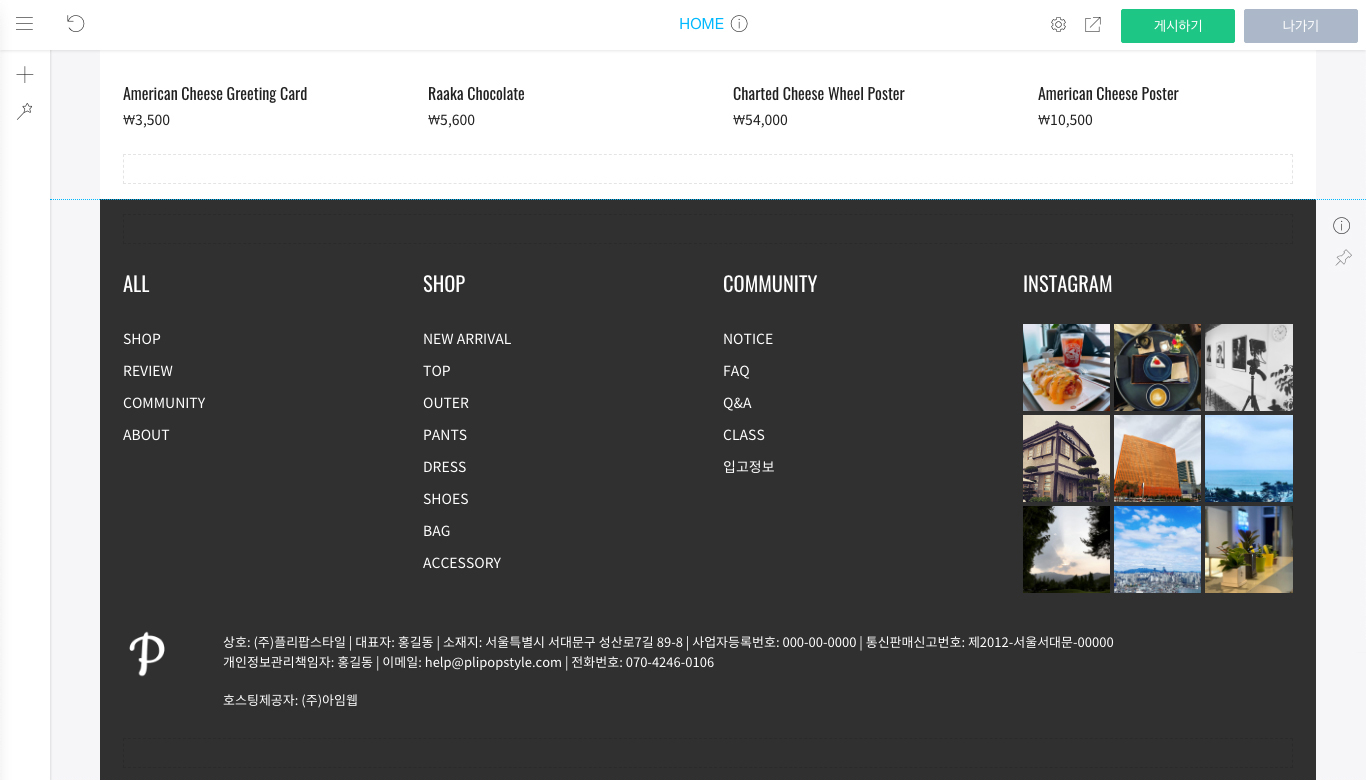 문제가 없다면 디자인 모드로 돌아가 게시하기 버튼을 클릭합니다.