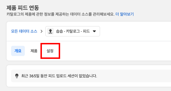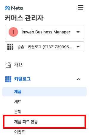 왼쪽 메뉴에서 [카탈로그 > 제품 피드 연동]을 클릭합니다.