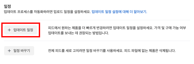 일정 항목에서 업데이트 일정 버튼을 클릭합니다.