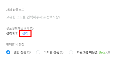 위 3~7번 과정을 반복해 모든 상품의 상품정보제공고시 설정을 완료합니다.