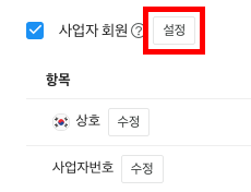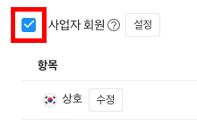 사업자 회원 유형을 활성화하려면 사업자 회원 유형 왼쪽의 체크박스를 선택합니다.
