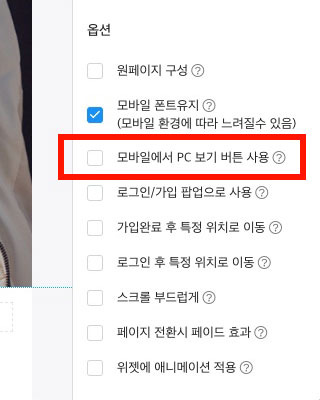3. 옵션 항목에서 모바일에서 PC 보기 버튼 사용을 선택합니다.