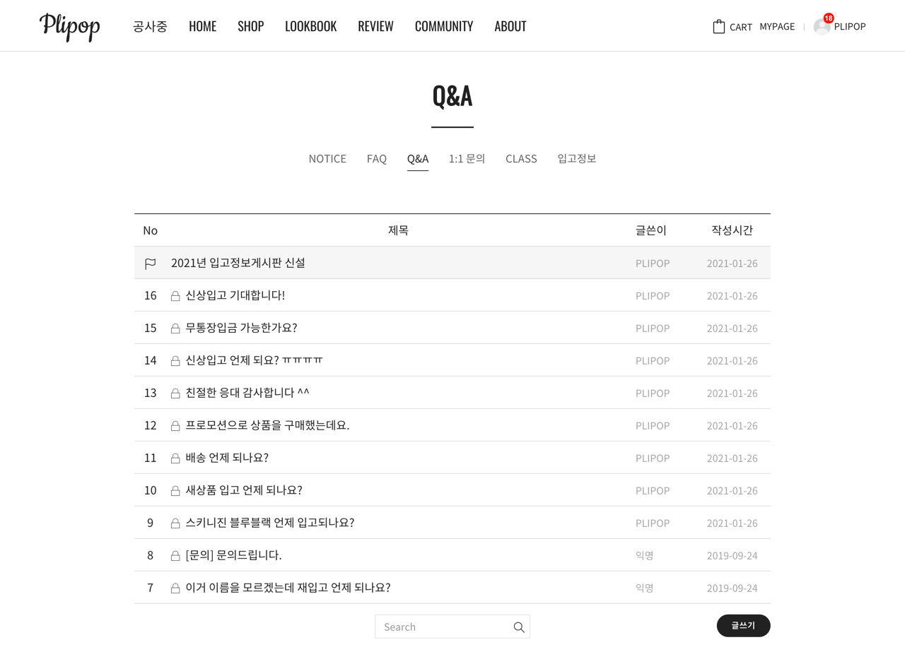 이제 이 게시판은 방문자, 회원에 상관없이 항상 비밀글로 작성하게 됩니다.