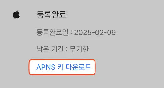 캠페이너스 지원팀에 요청하여 FCM 신청을 위해 APN 인증키(APNS 키)를 미리 받아둡니다.