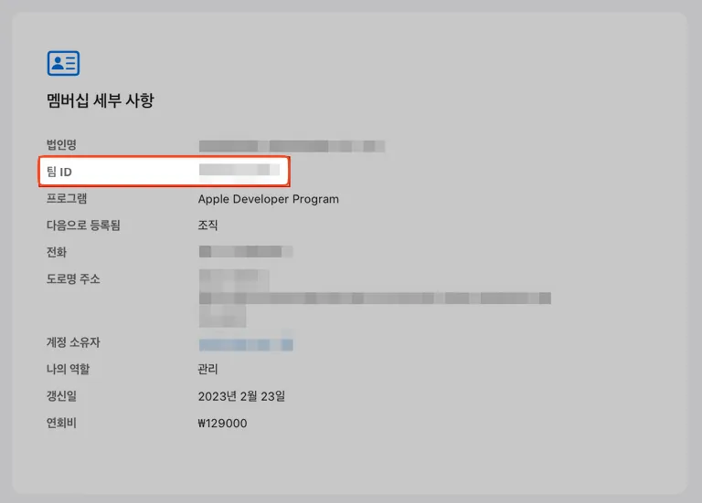 멤버십 세부 사항 메뉴에서 팀 ID를 확인합니다.