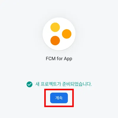 잠시 후 아래와 같이 프로젝트 생성이 완료되면 계속 버튼을 클릭합니다.