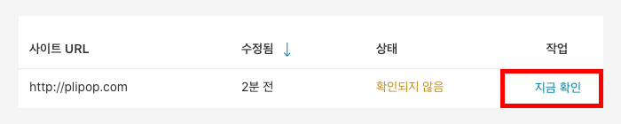 4. 페이지 하단에, 사이트 주소를 확인하고 지금 확인을 클릭합니다.