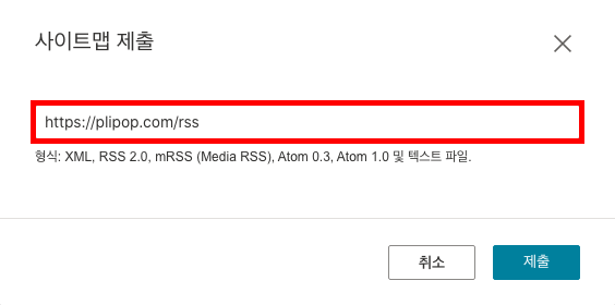 3. 위 1단계에서 메모해둔 RSS 주소를 입력하고, 제출 버튼을 클릭합니다.