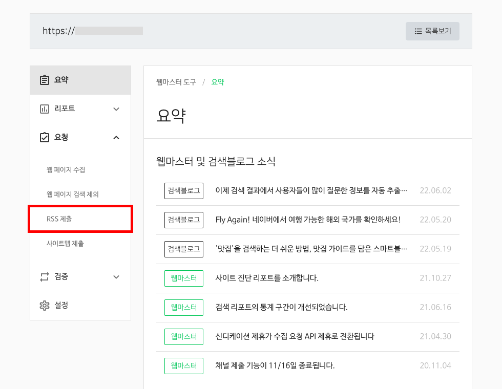 1. 왼쪽 메뉴에서 [요청 > RSS 제출]을 클릭해 이동합니다.