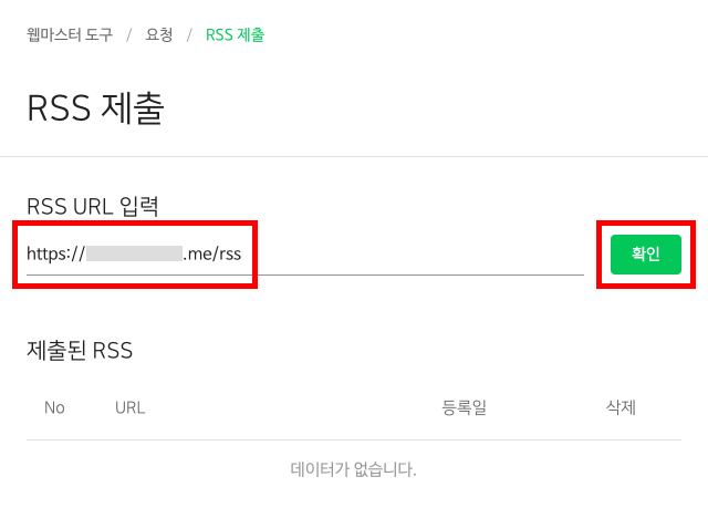 참고: 내 사이트의 RSS 주소를 모르는 경우 사이트 RSS 주소 확인 방법 도움말에서 확인 방법을 알아볼 수 있습니다.