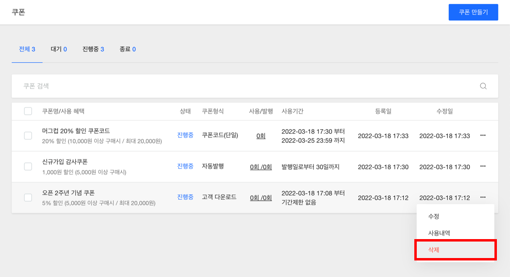 쿠폰 삭제하기