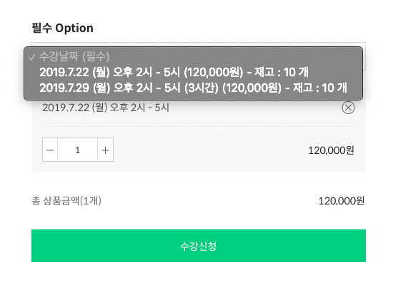 옵션명: 수강날짜를 입력합니다. *상품 종류에 따라 다름