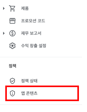 왼쪽 하단의 [정책 > 앱 콘텐츠]를 클릭해 이동합니다.