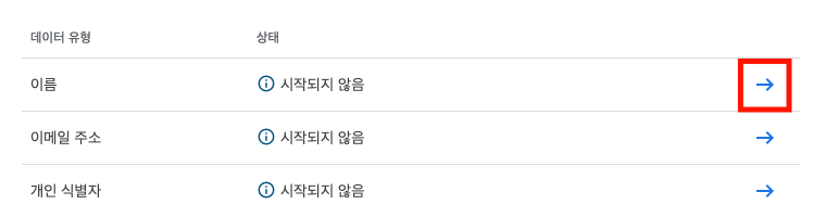 각 데이터 유형의 오른쪽 끝에 위치한 화살표 → 아이콘을 클릭합니다.